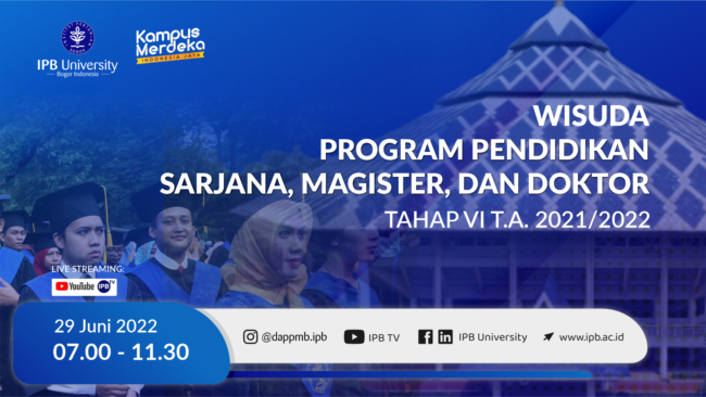Sidang Terbuka Institut Pertanian Bogor dengan acara khusus Wisuda Program Pendidikan Sarjana, Magister, dan Doktor Tahap III Tahun Akademik 2021/2022, Pada wisuda daring ini diikuti 512 wisudawan yang terdiri dari 294 lulusan Program Pendidikan Sarjana, 161 lulusan Program Pendidikan Magister, dan 57 lulusan Program Pendidikan Doktor. yang dilaksanakan pada: Rabu, 25 Mei 2022 Dilaksanakan secara…